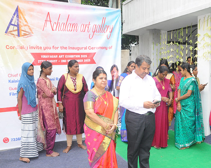Achalam Art Gallery proudly launched the Vinayagar Art Exhibition 2025 on August 27th, with the showcase running through to September 2nd. The inauguration ceremony was graced by Kalaimamani Devayani Rajkumaran, while Film Director Rajkumaran honored the occasion as the Guest of Honour. The event also saw the esteemed presence of V. Mahalakshmi, Director of Achalam Art Gallery, and S. Venkatachalapathy, M.F.A, Director of Sri Annai Kamakshi Kalaikudam and Sri Annai Kamakshi Music and Fine Arts College.